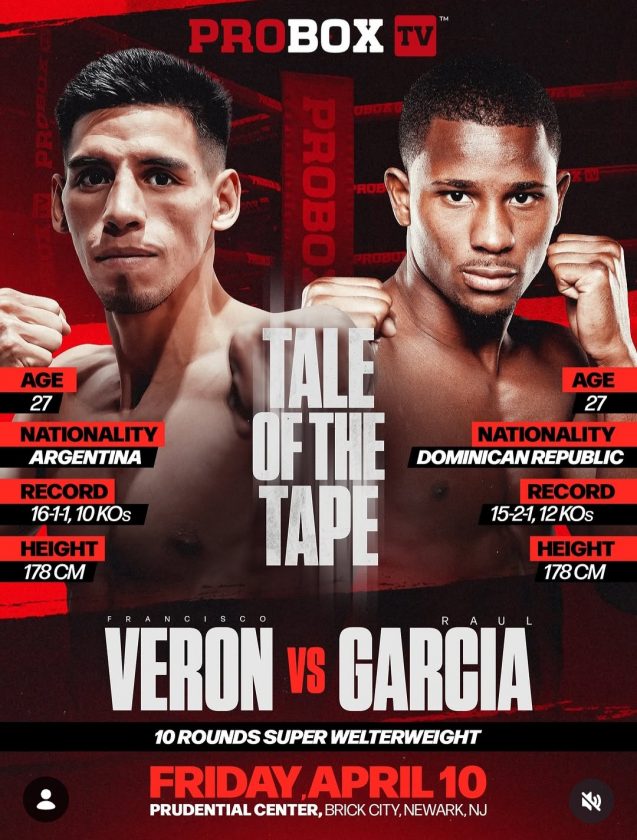 El argentino Francisco Verón tendrá una nueva oportunidad de mostrarse en el escenario internacional cuando enfrente al dominicano Raúl García...