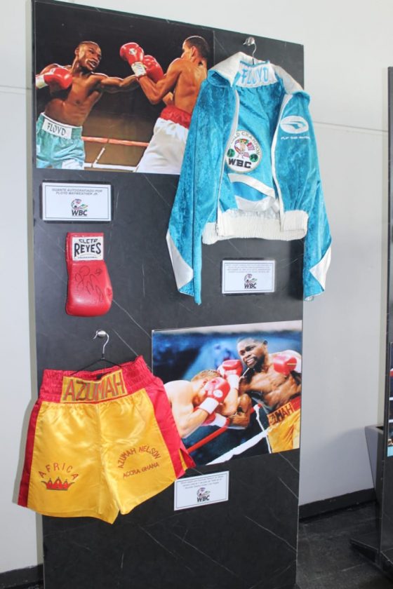 La sala de exposición rinde homenaje a los grandes campeones del WBC, adornada con retratos y breves recuentos de los logros de figuras icónicas como Julio César Chávez, Floyd Mayweather Jr., Manny Pacquiao, Muhammad Ali, Saúl Álvarez, entre otros.