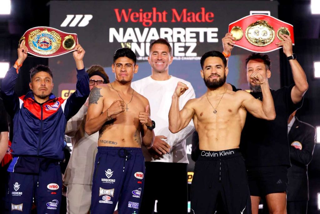 En el pesaje público se repitió la escena que marcó toda la promoción: saludo cordial, sonrisas y puño cerrado al final del careo. Navarrete, relajado y sonriente; Núñez, más serio pero firme. Sin teatro. Sin exageraciones. El mensaje fue claro: el combate hablará por ellos.