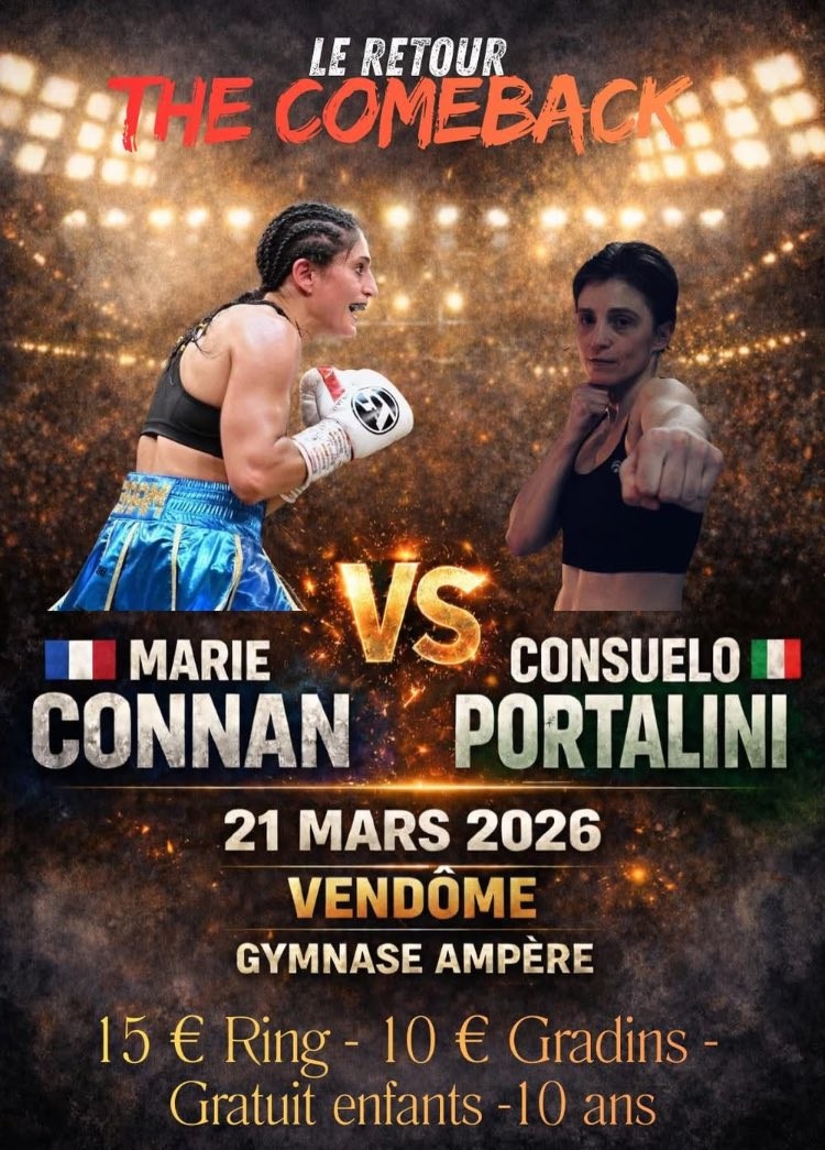El 21 de marzo de 2026, la ciudad de Vendôme, en Francia, será escenario de una velada especial de boxeo marcada por el regreso al ring de Marie Connan, quien enfrentará a la italiana Consuelo Portolani en el combate principal de la noche.
