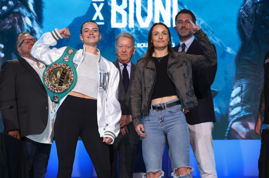 La campeona pluma del Consejo Mundial de Boxeo, la australiana Skye Nicolson y su rival Raven Chapman, sostuvieron un entrenamiento...